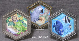 先日お知らせした「第6回プチ・ノエル展のお知らせ」続報です。出品者6人6様のテーマで制作していますが、私は第5回展にひきつづき「みつめるどうぶつ」を描いています。今回組み合わせているモチーフは貝がメイン、植物のなかでも多 […]